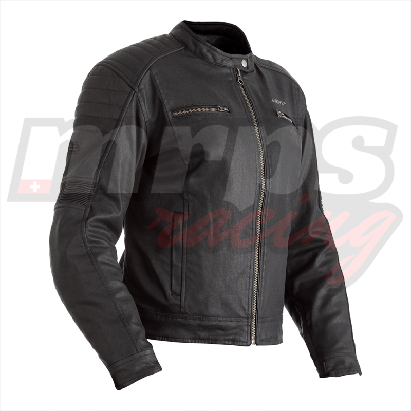 La RST Brixton est fabriquée à partir d'un tissu coton ciré résistant et renforcé avec de la fibre d'aramide. La veste est équipée de protections d'épaules et de coudes CE de niveau 1, et est dotée d'une doublure thermique matelassée amovible. Des points de ventilation au niveau de la poitrine et de l'arrière de la veste sont présents pour favoriser la circulation de l'air à l'intérieur de la veste.