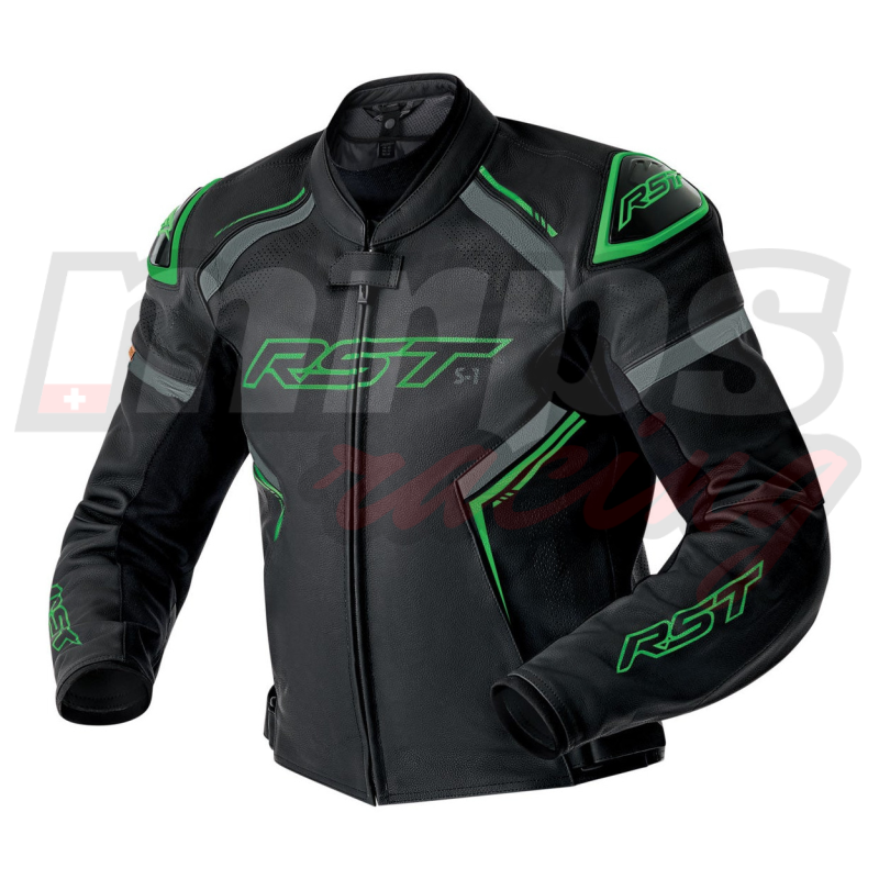 Blouson cuir RST S-1 D3O Black/Grey/Flo Green (taille XL)