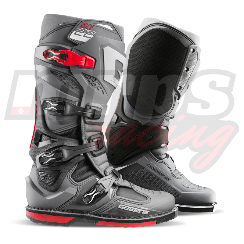 La Gaerne SG22 s'impose comme la botte de motocross de premier choix pour les pilotes dont l'unique objectif est la domination en compétition. Héritière de la légendaire lignée Gaerne, elle bénéficie d'une ingénierie de pointe pour offrir une symbiose parfaite entre protection rigide et liberté de mouvement. "Made in Italy", elle incarne le futur du pilotage tout-terrain.