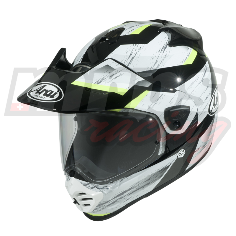 D'autres améliorations incluent un tout nouveau système de ventilation. Le système de ventilation du Tour-X5 est le deuxième modèle à présenter le conduit d'air avec logo 3D, précédemment introduit sur le Quantic. Complété par le nouveau spoiler arrière et la dernière itération du Delta Duct version 6, le Tour-X5 dispose également d'une toute nouvelle ventilation au menton. Le système de ventilation du Tour-X5 aura un flux d'air suffisant pour vous garder au frais quoi qu'il arrive, alors ne vous inquiétez pas. De plus, la grille d'aération intérieure peut faire circuler l'air vers la bouche ou la visière pour un désembuage accru. Comme pour tout modèle Arai, les pièces de ventilation telles que le 3D Logo Duct, le spoiler arrière et le Delta Duct 6 sont conçues pour se briser lors d'un impact pour des performances maximales de l'effet "glancing-off".