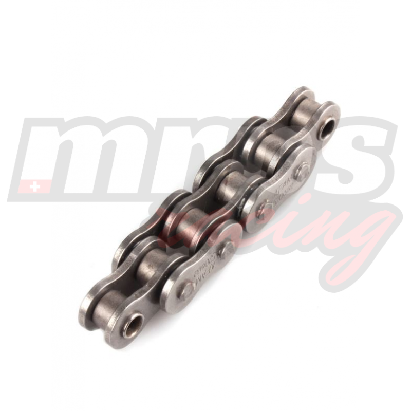 Référence A525XMR3 126L du catalogue AFAM avec joint type XS-ring, conseillée pour cylindrée de 250cc-800cc. Fermeture de type MRS, attache à riveter avec axes aux extrémités creuses.