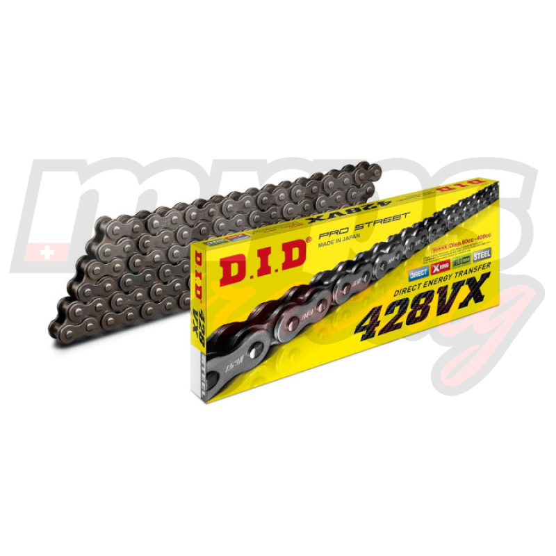 La chaîne de la série VX est un excellent upgrade de la chaîne d'origine. C'est la plus populaire de la gamme D.I.D. et la plus largement utilisée sur les motos de route et tout-terrain.