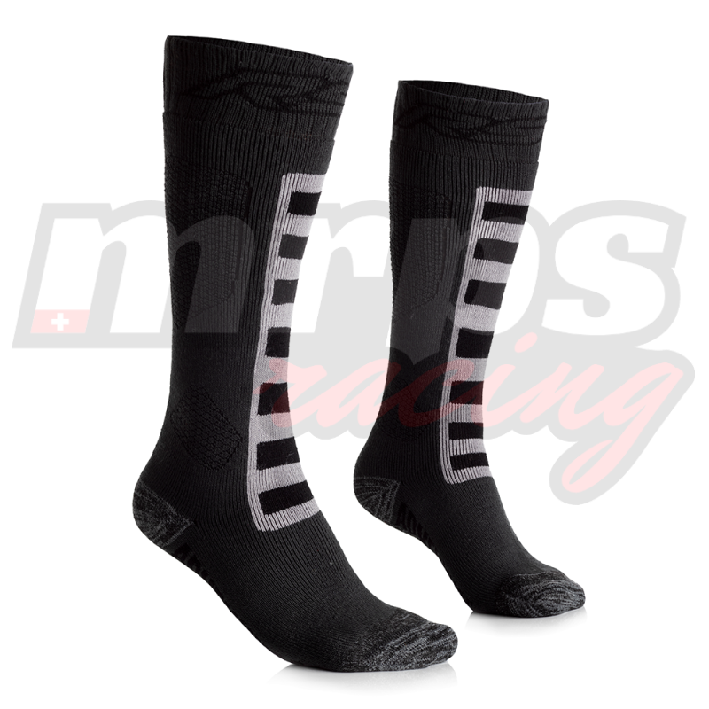 Les chaussettes RST Adventure Coolmax sont spécifiquement développées pour devenir l'allié indispensable des pilotes de trail et d'enduro. Conçues pour être portées avec des bottes de type Adventure ou tout-terrain, ces chaussettes hautes montent jusqu'au genou pour offrir une interface parfaite entre la jambe et la botte, évitant ainsi les frottements et les irritations lors des longues journées de roulage.