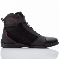 Les chaussures renforcées RST Frontier sont dotées d’une semelle plate, de style sneakers, faites pour marcher une fois que vous avez posé la moto. Fabriquée en microfibre et renforcée par un tissu balistique, elle est certifiée CE niveau 1/1/2/2 et intègre des protections de talon et de cheville.