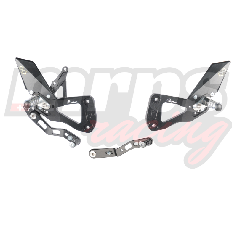 Les commandes reculées Lightech sont réalisées en aluminium 7075 taillé dans la masse et sont fabriquées dans l'usine de la marque en Italie. Elles sont livrées complètes et prêtes à monter. La présence d'un quickshifter / blipper non origine peut impliquer une modification de la tige de sélection fournie. Les pièces détachées sont disponibles sur demande et sur commande.