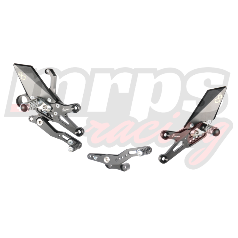 Les commandes reculées Lightech sont réalisées en aluminium 7075 taillé dans la masse et sont fabriquées dans l'usine de la marque en Italie. Elles sont livrées complètes et prêtes à monter. La présence d'un quickshifter / blipper non origine peut impliquer une modification de la tige de sélection fournie. Les pièces détachées sont disponibles sur demande et sur commande.
