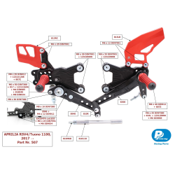 Commandes reculées PP Tuning Aprilia Tuono V4 1100 Factory / RR 2017-20 (noir/rouge, standard)