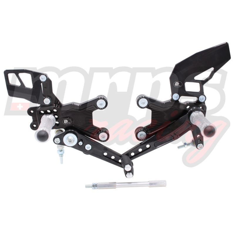 Commandes reculées PP Tuning Aprilia Tuono V4 1100 / Factory 2021-26 (noir/argent, standard)