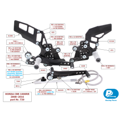 Commandes reculées PP Tuning Honda CBR 1000 RR 2008-16 (standard)