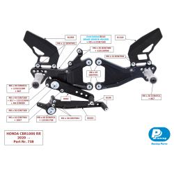 Commandes reculées PP Tuning Honda CBR 1000 RR-R / SP 2020-26 (standard)
