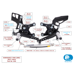 Commandes reculées PP Tuning Kawasaki Z900 2017-19 (standard)
