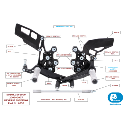Commandes reculées PP Tuning Suzuki SV 1000 / S 2003-07 (inversées)