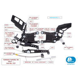 Commandes reculées PP Tuning Yamaha YZF-R6 2017-25 (standard)