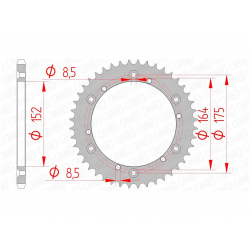 Couronne AFAM type 12500 en acier, pas 520, 44 dents (12500-44).