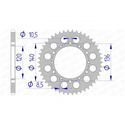 Couronne AFAM type 17404 en aluminium, pas 520, 44 dents (17404-44).