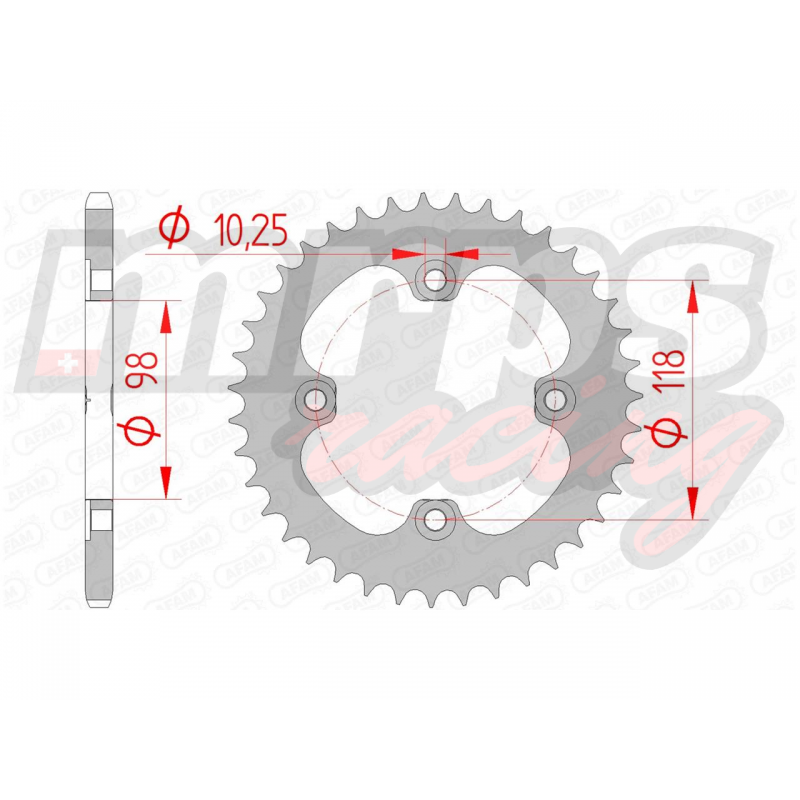 Couronne AFAM type 92401 en acier, pas 520, 39 dents (92401-39).