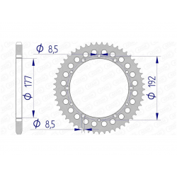 Couronne AFAM type 63300 en aluminium, pas 520, 53 dents (63300-53).