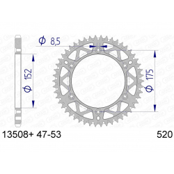 Couronne AFAM type 13508 en aluminium, pas 520, 48 dents (13508+48).