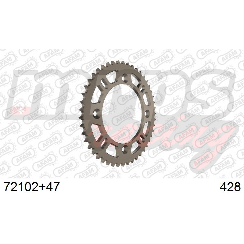 Couronne AFAM type 72102 en aluminium, pas 428, 47 dents (72102+47).