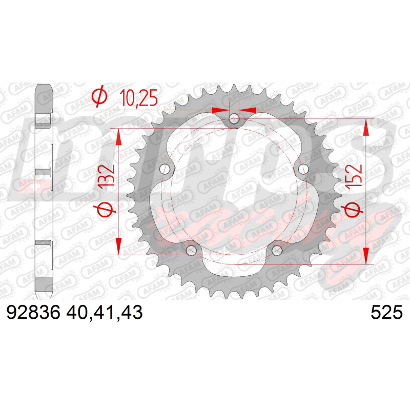 Couronne AFAM type 92836 en acier, pas 525, 40 dents (92836-40).