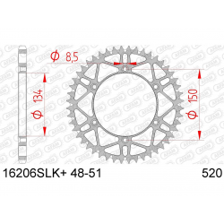 Couronne AFAM type 16206SLK en acier, pas 520, 50 dents (16206SLK+50).