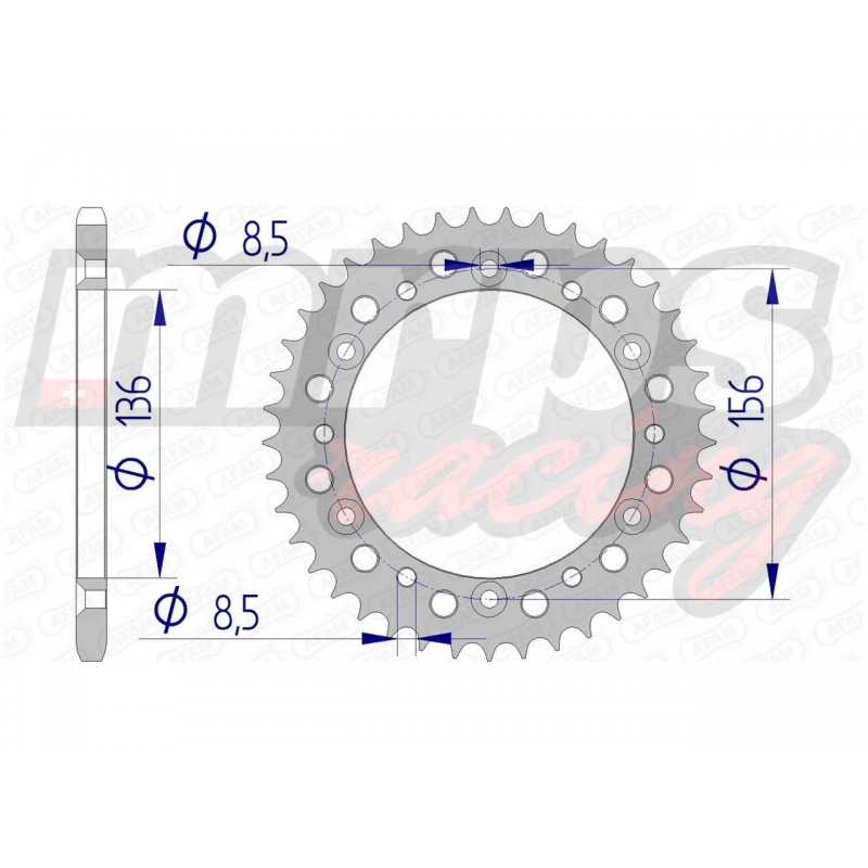Couronne AFAM type 15303 en aluminium, pas 520, 41 dents (15303-41).