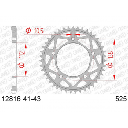 Couronne AFAM type 12816 en acier, pas 525, 43 dents (12816-43).