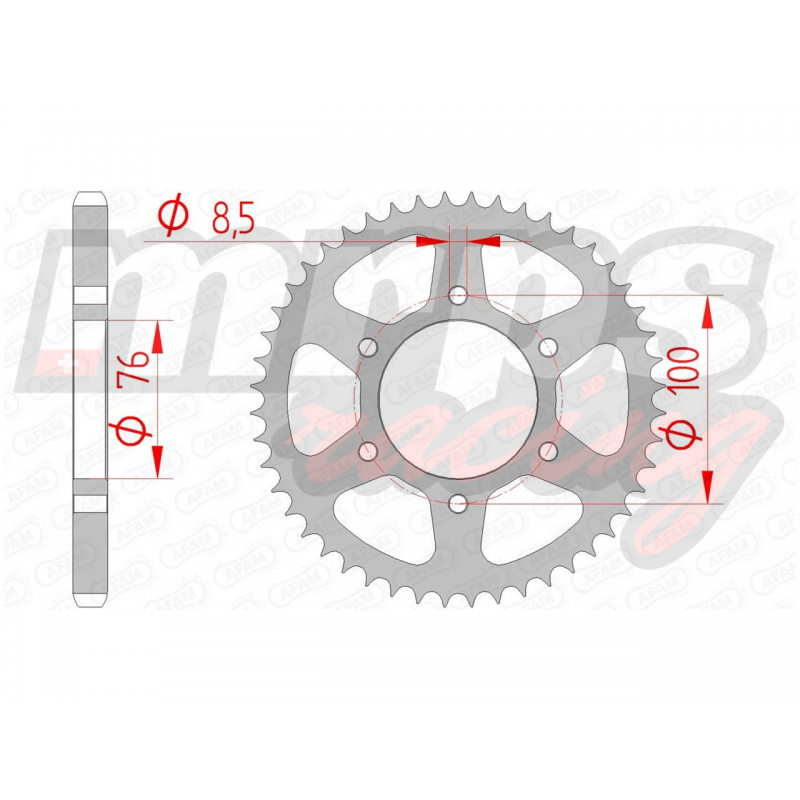Couronne AFAM type 12227 en acier, pas 428, 52 dents (12227-52).