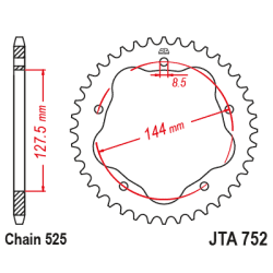 Couronne JT Sprockets aluminium type JTA 752BLK pas 525 (38 dents) racelite