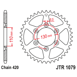 Couronne JT Sprockets type JTR1079 en acier, pas 420, 62 dents (JTR1079.62).