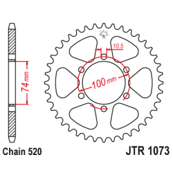 Couronne JT Sprockets type JTR1073 en acier, pas 520, 46 dents (JTR1073.46).