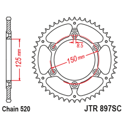 Couronne JT Sprockets acier type JTR 897SC pas 520 (52 dents) anti-boue
