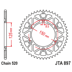 Couronne JT Sprockets aluminium type JTA 897BLK pas 520 (48 dents) racelite