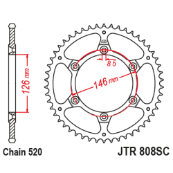 Couronne JT Sprockets acier type JTR 808SC pas 520 (47 dents) anti-boue