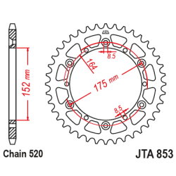 Couronne JT Sprockets aluminium type JTA 853BLK pas 520 (40 dents) racelite