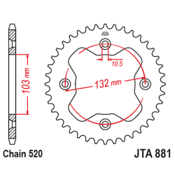 Couronne JT Sprockets aluminium type JTA 881BLK pas 520 (38 dents) racelite