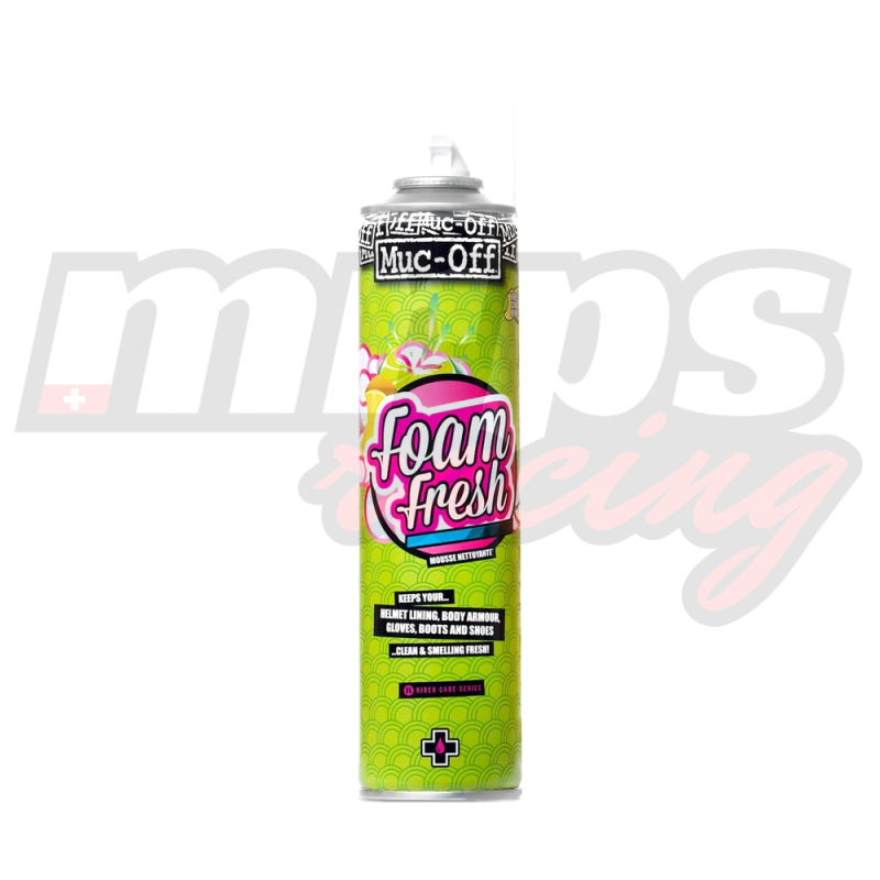 Le Muc-Off Foam Fresh est un nettoyant moussant haute efficacité conçu pour l'entretien des mousses de casques et de tout équipement souple en contact direct avec le pilote. Sa formule à action instantanée décolle délicatement les impuretés et les résidus incrustés en surface, tout en laissant un parfum frais de citron.