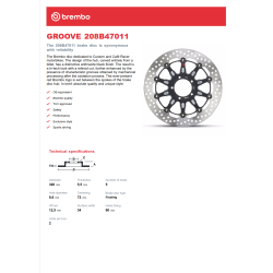 Le disque de frein "The Groove" de Brembo, consacré aux riders Custom, Café Racer et Bike by Night, vise à créer un élément distinctif pour les enthousiastes qui met en évidence et définit l'esprit du monde des vrais Café Racers, qui recherchent des produits de qualité, avec un attrait esthétique absolu.