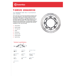 Paire de disques de frein Brembo 208.A985.36 type racing T-Drive.