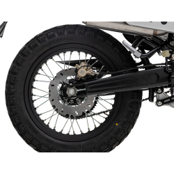 Les roues à rayons sont équipées d’une jante avant de 19 pouces et d’une jante arrière de 17 pouces, chaussées de pneus 110/80 R19 et 130/80 R17, avec une bande de roulement cramponnée, prête à relever tous les défis, de l’asphalte aux pistes off-road.