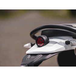 À première vue, la Caballero 700 est facilement identifiable grâce à la pureté et à la simplicité de ses lignes, soigneusement ciselées par le Fantic Style Centre. Des éléments emblématiques tels que le réservoir rouge, les phares ronds et les plaques de course jaunes sur les panneaux latéraux s’accompagnent de touches modernes telles que les plaques de moteur usinées CNC et les triple pinces, et la protection en carbone du système d'échappement.