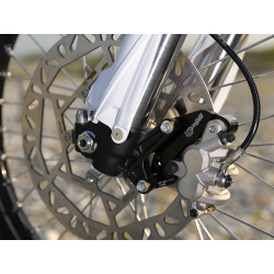 Avec un frein avant surdimensionné de 300mm, vous pouvez vous arrêter en toute sécurité à n'importe quelle vitesse. Nous avons également étudié la composition des pastilles pour vous offrir un maximum de modulabilité et de mordant sur tous types de terrains.