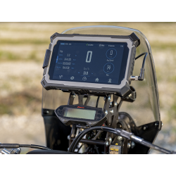 Le RallyScreen s'allume et s'éteint avec la moto mais il est équipé d'une batterie interne qui vous permet de l'emporter avec vous, en planifiant votre aventure et votre itinéraire confortablement depuis votre canapé.