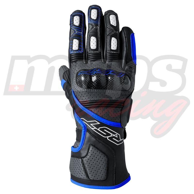 Les gants RST Fulcrum sont conçus pour la conduite sportive sur route. Ils offrent des protections d'articulations en fibre de carbone, des doigts préforméés et surpiqués, du cuir tactile digital sur le pouce et l’index (touch ready), d'une double couche de cuir sur la paume et d'une prise en main antidérapante.