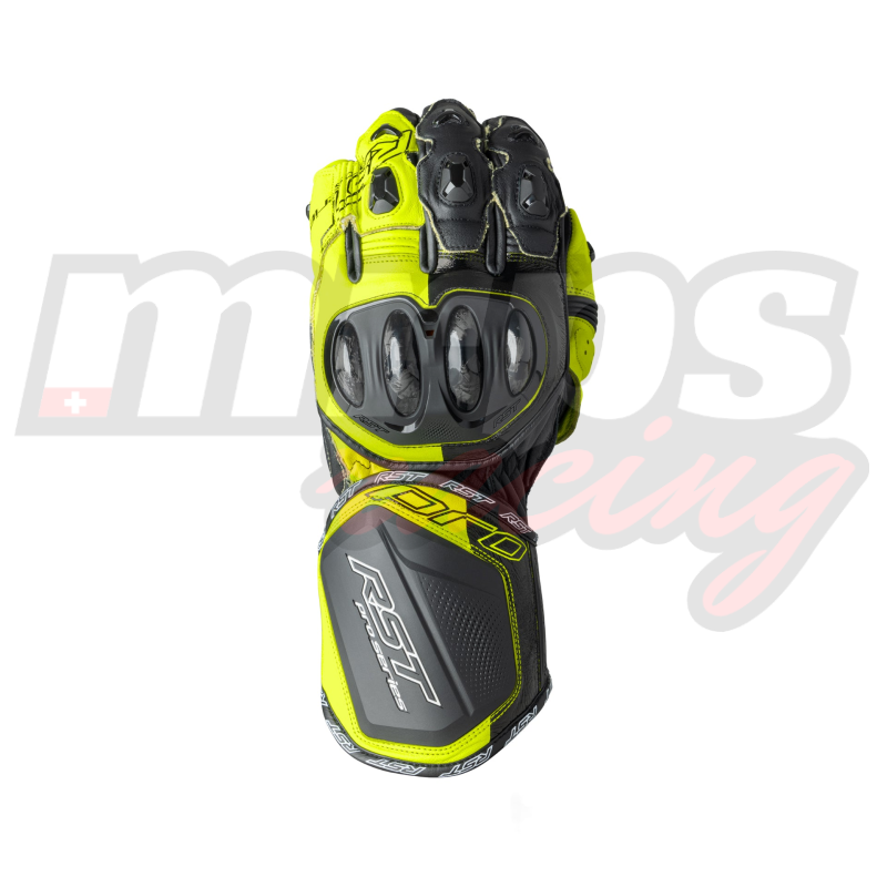 Côté sécurité, c'est un véritable arsenal : on retrouve des inserts D3O® sur les articulations, la paume et le pouce, couronnés par une toute nouvelle coque de métacarpes en fibre de carbone forgé. C'est, à ce jour, le gant le plus technique et le plus abouti de la gamme RST, offrant aux pilotes exigeants un feeling et une protection dignes du paddock.