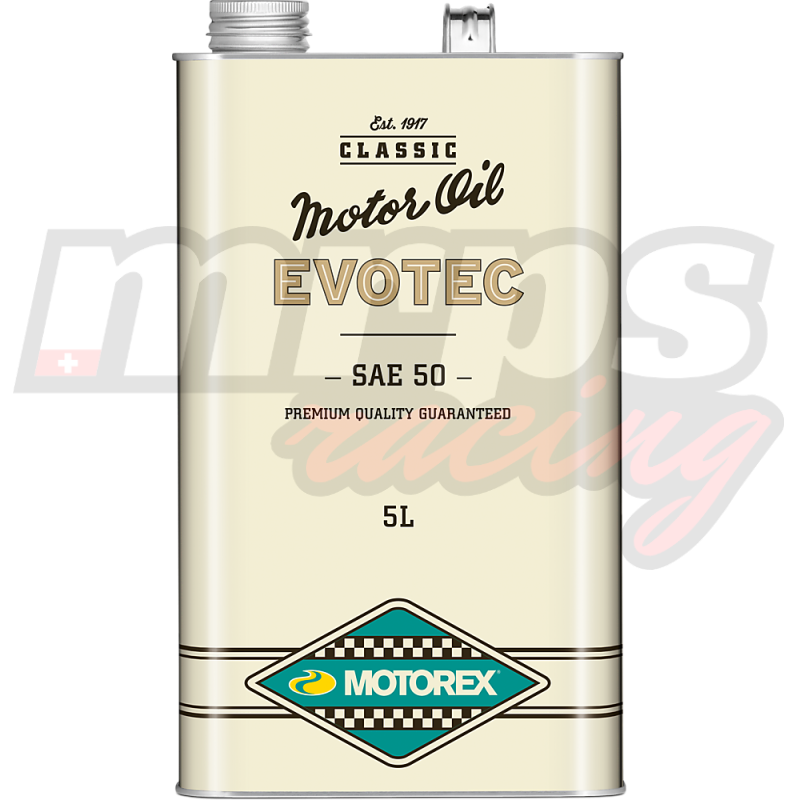 MOTOREX EVOTEC SAE 50 a été spécialement développée pour les véhicules classiques. Elle convient parfaitement pour les moteurs essence et diesel avec lubrification forcée et filtre fin. De plus, elle peut être très bien utilisée avec des moteurs provenant des États-Unis, des moteurs de compétition historiques et des moteurs avec arbre à cames en tête / soupapes en tête. La viscosité SAE 50 convient pour les moteurs à refroidissement à air ainsi que pour les motocyclettes. Elle peut aussi être utilisée en cas de problèmes de surchauffe ou de consommation d’huile élevée.