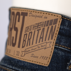 Un jean 5 poches de style classique avec coupe des jambes droite (straight leg). Fabriqué en denim extensible avec une doublure en fibre d'aramide dans les zones d'impact clés telles que le côté des hanches, l'assise et les genoux. Certifié CE de niveau A, une protection supplémentaire est également offerte par la protection de genoux CE de niveau 1 et une poche pour la protection des hanches.
