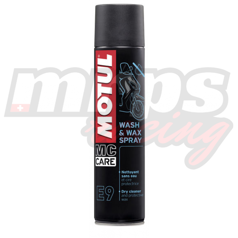 Nettoyeur à sec pour motocyclettes. Sa composition spéciale nettoie, protège et fait briller les surfaces sans eau et avec peu d’effort: carénages, jantes, cadres, ailes, etc.