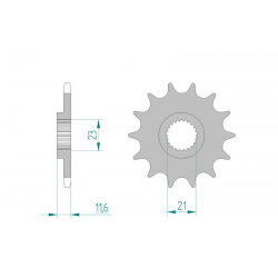 Pignon AFAM type 21307 en acier, pas 520, 14 dents (21307-14).