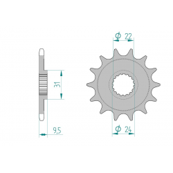 Pignon AFAM type 22406 en acier, pas 520, 13 dents (22406-13).